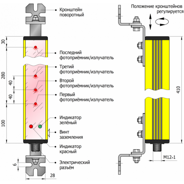 • Устройство относится к Типу 4 (высший тип безопасности) надёжности согласно ГОСТ IEC 61496-1-2016.