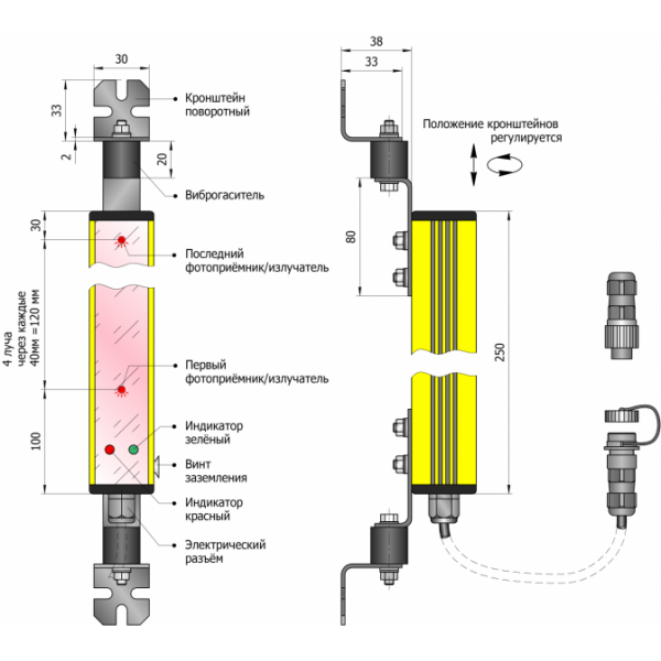Оптические барьеры следует закреплять в любом положении, которое обеспечивает прямую оптическую видимость между излучателем и приёмником.