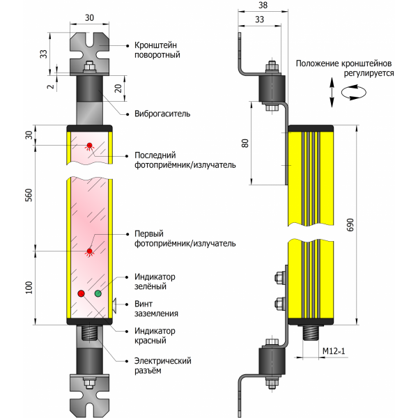 • Устройство относится к Типу 4 (высший тип безопасности) надёжности согласно ГОСТ IEC 61496-1-2016.