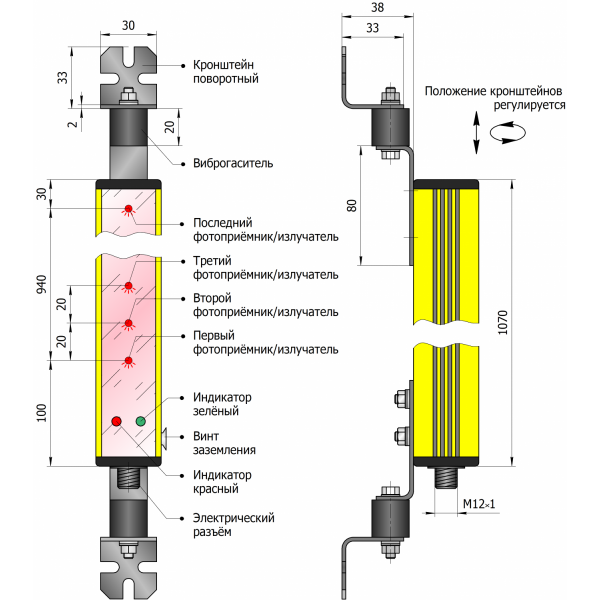 | Температура эксплуатации фотобарьера | -30...+75°С |
