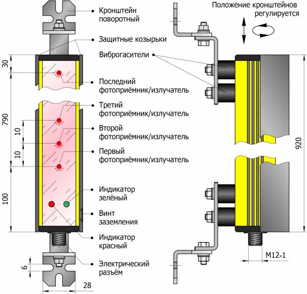 Оптические барьеры следует закреплять в любом положении, которое обеспечивает прямую оптическую видимость между излучателем и приёмником.