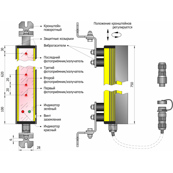 Оптические барьеры следует закреплять в любом положении, которое обеспечивает прямую оптическую видимость между излучателем и приёмником.