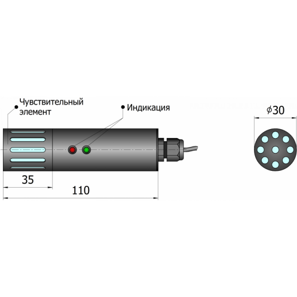 • Чувствительный элемент защищён от попадания пыли и воздействия агрессивных газов (аммиак и т.д.).