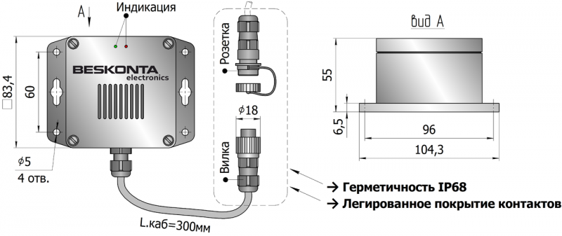 | Электрическое подключение | разъём герм. IP68 |