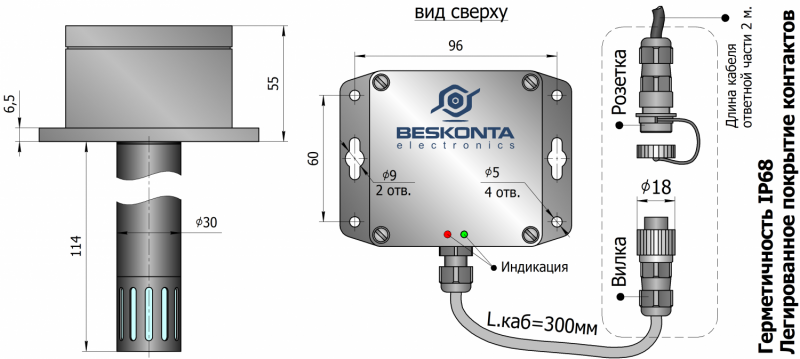 | Электрическое подключение | разъём герм. IP68 |