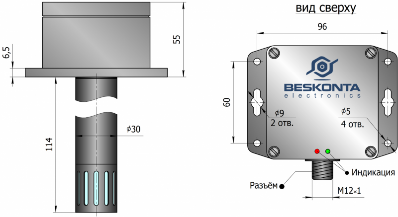 • Чувствительный элемент защищён от попадания пыли и воздействия агрессивных газов (аммиак и т.д.).