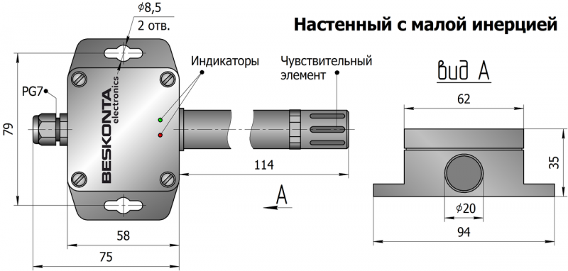 • Чувствительный элемент защищён от попадания пыли и воздействия агрессивных газов (аммиак и т.д.).