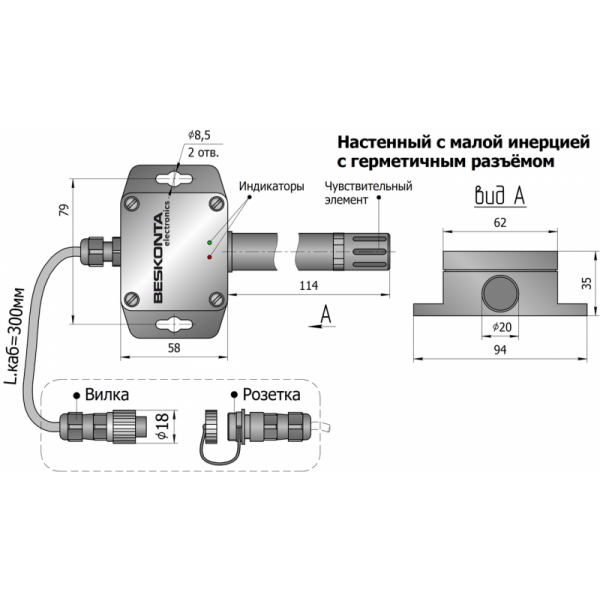 • Чувствительный элемент защищён от попадания пыли и воздействия агрессивных газов (аммиак и т.д.).