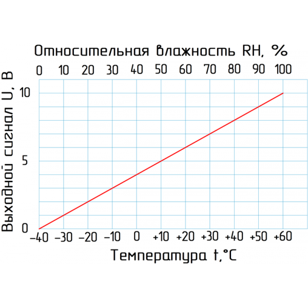 | Выходной сигнал влажности и температуры | 0...10 В |