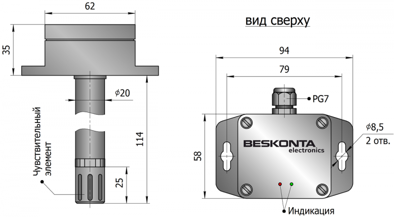 • Чувствительный элемент защищён от попадания пыли и воздействия агрессивных газов (аммиак и т.д.).