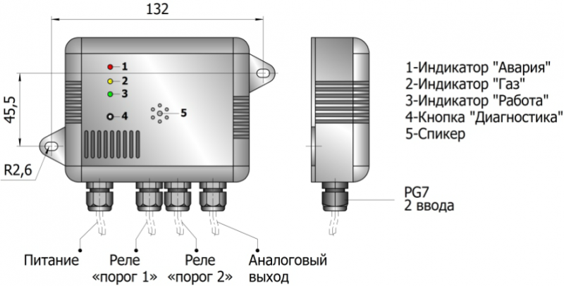 | Порог срабатывания №2 | 50 ± 5 мг/м3 |