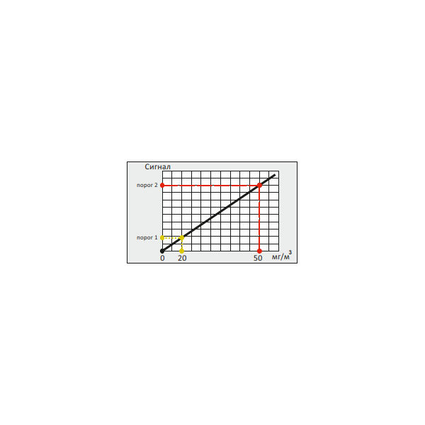 | Порог срабатывания №1 | 20 ± 5 мг/м3 |