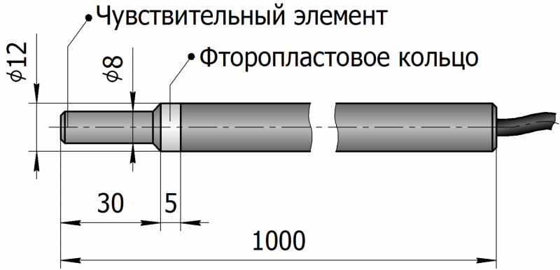 • Чувствительный элемент покрыт антикоррозионным слоем и защищён слоем компаунда и прочным металлическим корпусом.