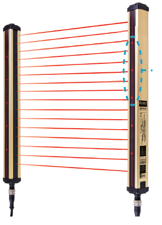 Принцип работы: фотобарьер (завеса безопасности) создаёт оптическую преграду, при пересечении которой происходит быстрое отключение движущихся опасных частей механизмов и машин или светошумовая сигнализация.
