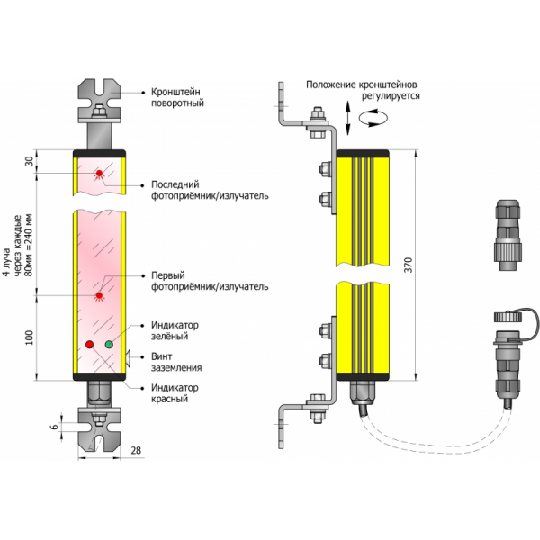 Оптические барьеры следует закреплять в любом положении, которое обеспечивает прямую оптическую видимость между излучателем и приёмником.