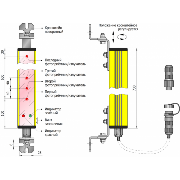 • Устройство относится к Типу 4 (высший тип безопасности) надёжности согласно ГОСТ IEC 61496-1-2016.