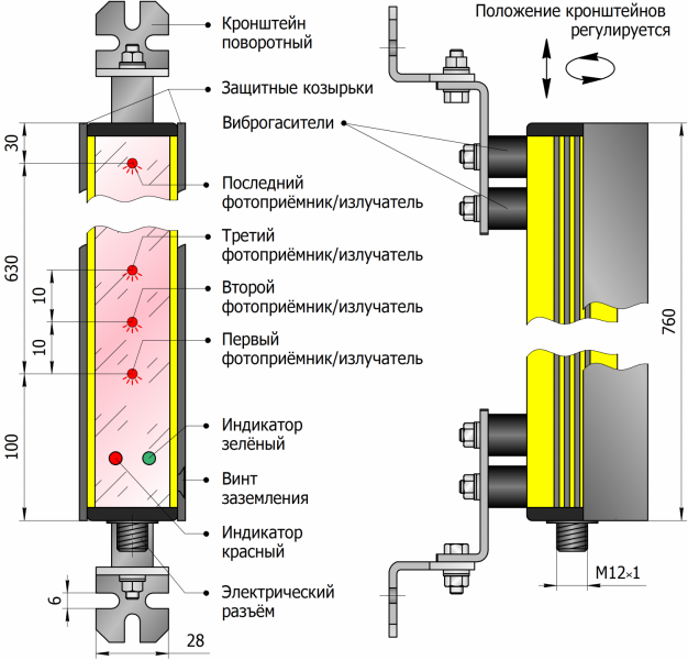Оптические барьеры следует закреплять в любом положении, которое обеспечивает прямую оптическую видимость между излучателем и приёмником.