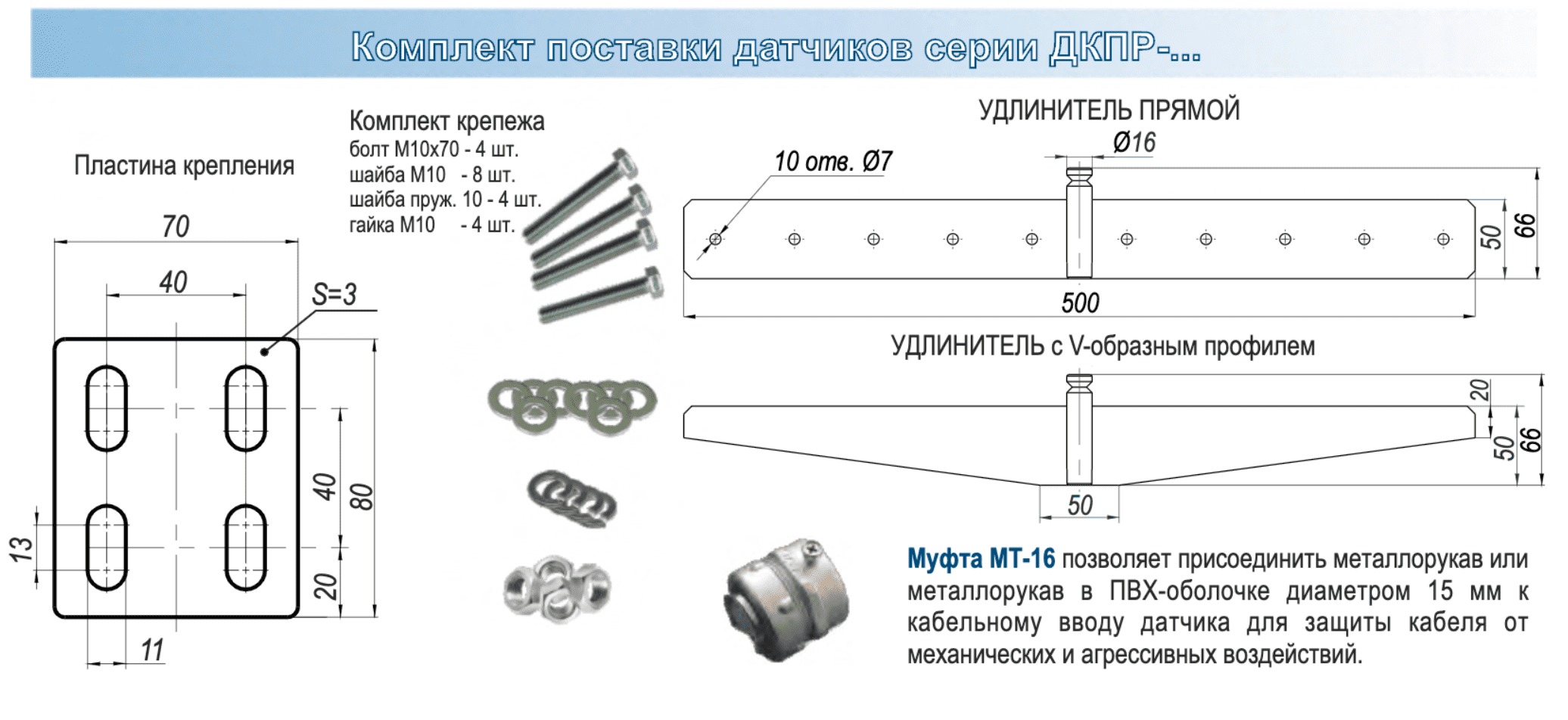 При применении датчика на конвейерах с V-образным профилем холостой ветви необходимо использовать удлинитель с соответствующим профилем планки из комплекта поставки.