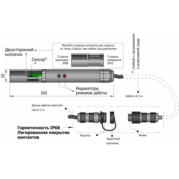 • Система индикация датчика сообщает о самодиагностике и режимах работы.