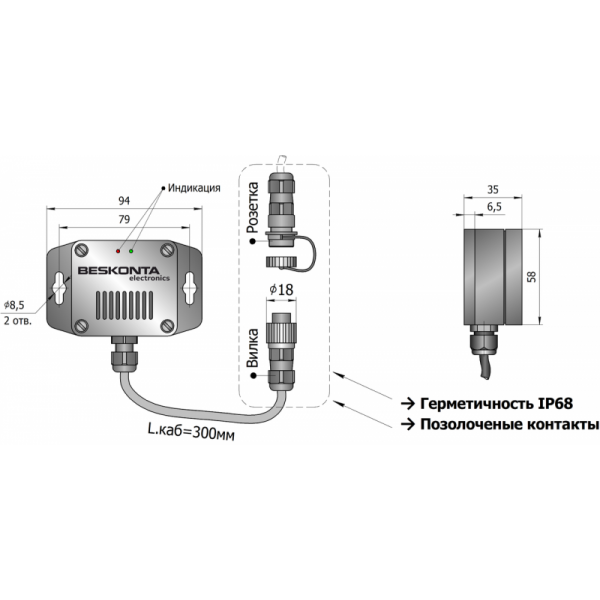 | Герметичность по ГОСТ 14254-96 | IP43/IP65 |