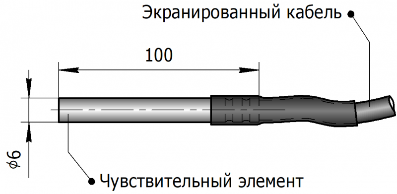 • Чувствительный элемент покрыт антикоррозионным слоем и защищён слоем компаунда и прочным металлическим корпусом.