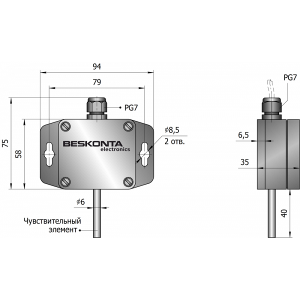 • Чувствительный элемент покрыт антикоррозионным слоем и защищён слоем компаунда и прочным металлическим корпусом.