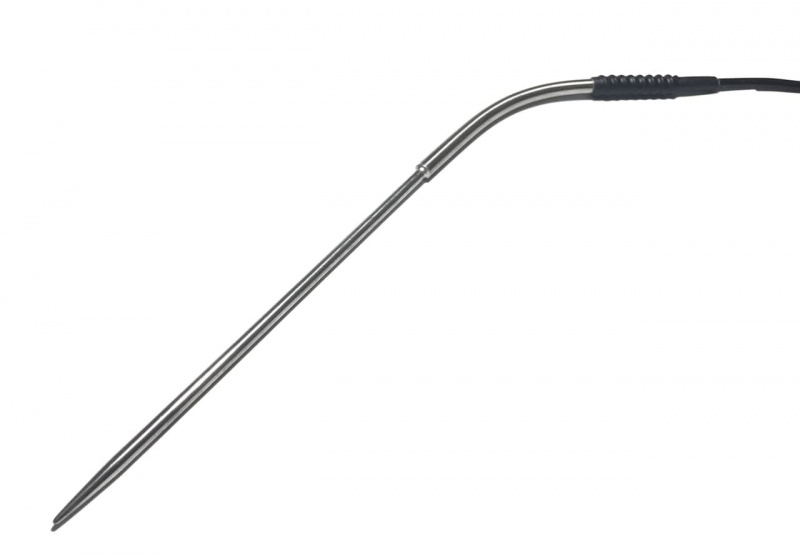 Игольчатый датчик температуры предназначен для измерения температуры внутри продукта. Измерение производится при непосредственном прокалывании и погружении чувствительной иглы внутрь продукта. Пропорционально изменению температуры меняется сопротивление чувствительного элемента. Применяется при приготовлении еды: выпекание хлеба, жарка мяса (для приготовления стейков "с кровью").