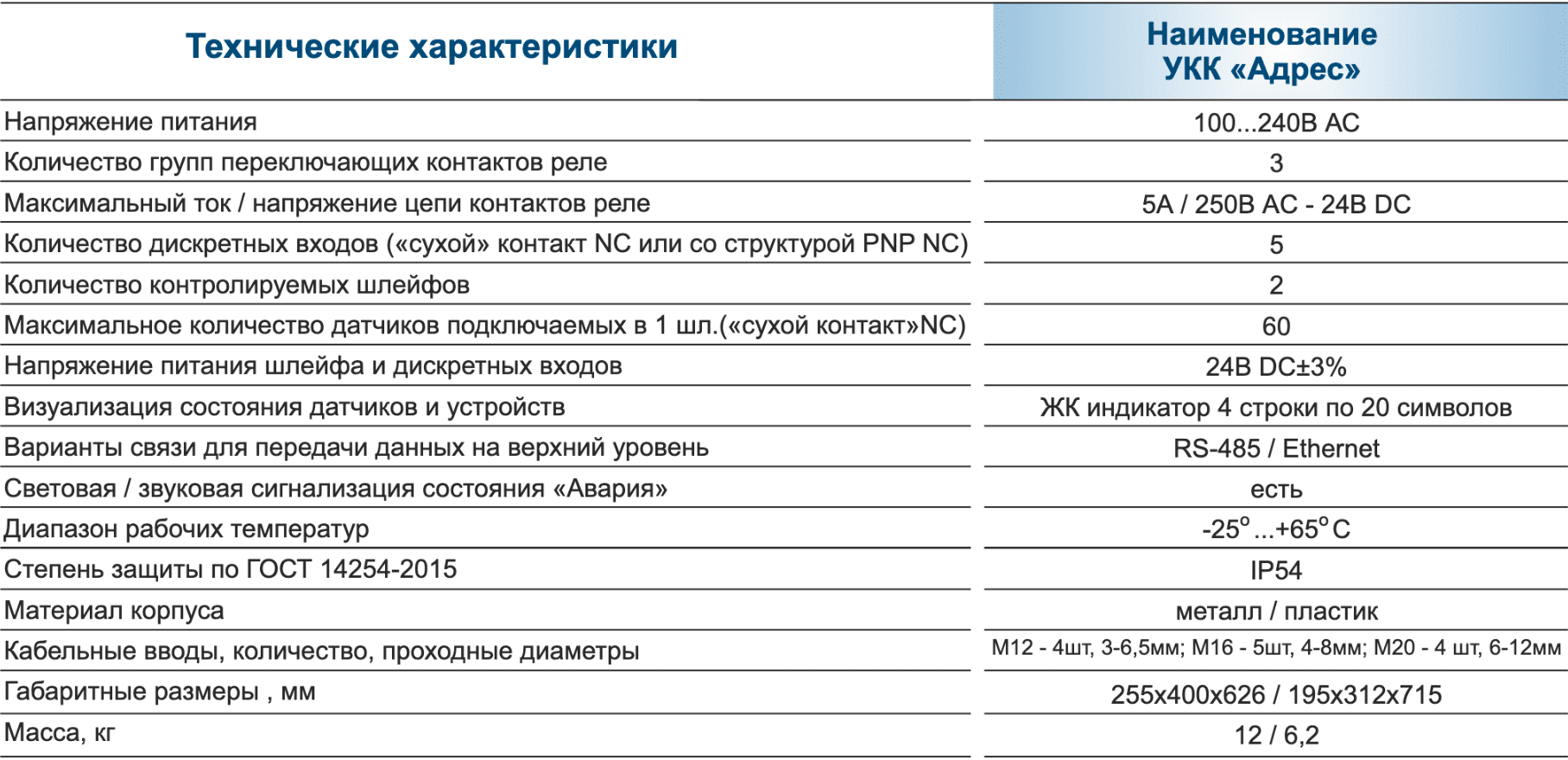 1. Подключение к двум дискретным входам шлейфов с последовательно соединенными датчиками (до 60-ти дискретных датчиков с НЗ «сухим» контактом в каждом) с возможностью определения адреса сработавшего (опция возможна при использовании адресных модулей серии АМ-УКК «Адрес»).